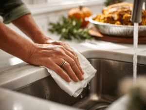 Finish with a five-minute bucket test on the kitchen sink trap. Fill a pot with water, pour it through, and watch the trap as you wipe a paper towel along the joints. Any moisture means a worn washer. Replace now, not after the pie is cooling.